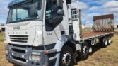 2006 Iveco Stralis 435 Automatic 8×4 Traytop with Tailgate Loader. 31′ Steel CBW Tray. 31000 GVM. 50000 GCM. Iveco 435 HP 10 Litre 6 Cylinder Intercooled Turbo Diesel,ZF 16 Speed Automated Transmission 8×4 Twin Steer/Bogie Drive on Hendrickson HAS460 Airbag Suspension Air Conditioning,Stainless Steel Underbody Toolbox,Sunvisor Fitted with Capital Body Works Steel Tabletop Body with Auslift Steel Tailgate Loader with Remote Control Body L-9045 x W-2500. Wheelbase-6800. Tailgate Loader L-2130 x W-2450. GVM 31000. CGM 50000. Tare 11640. Sold serviced with NSW Roadworthy Inspection Price includes GST & Tax Invoice Competitive finance available Delivery arranged to any state Independent inspections welcome Other 8×4 6×4 4×4 & 4×2 Trucks in stock including Kenworth,Western Star,Mack,Freightliner,Iveco,Volvo,Scania,Mercedes Benz,MAN,DAF,Sterling,Ford,Dennis Eagle Trayback,Beavertail,Service Body,Cranetruck,Cab/Chassis,Curtainside,Refrigerated Pantech,EWP,Sweeper Truck,Compactor,Water Trucks & Fire Trucks Ex Govt,Council,Forestry,National Parks,Fire & Rescue Service,Rural Fire Service & Major Fleets Established 1991 with over 200 Trucks in stock