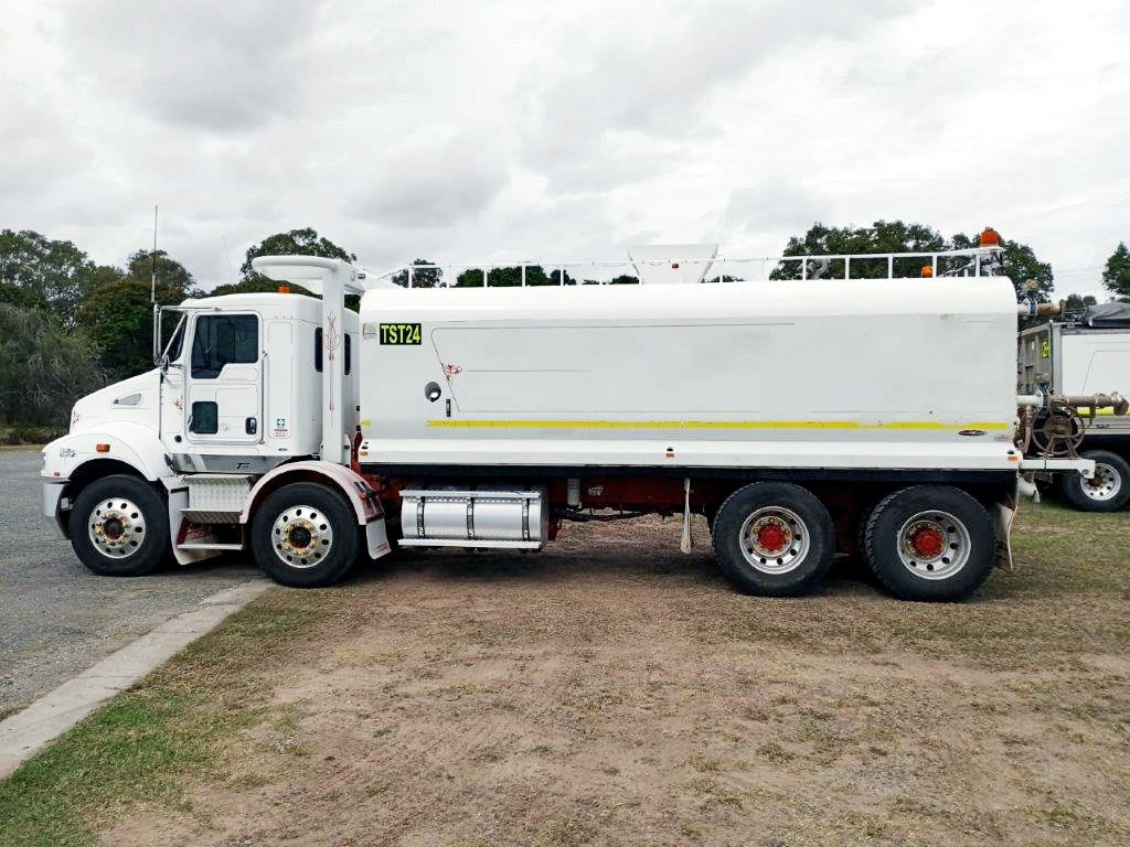 Tidy 8 wheeler water truck, suit civil or mine operation, Allison Auto transmission, KW air suspension rear, cross lock rear axles, Aluminium wheels, 20,0000 litre Steel water, with baffle balls, hydraulic pump, various sprays, cab operated fire fighter nozzle, work lights, ready for work.