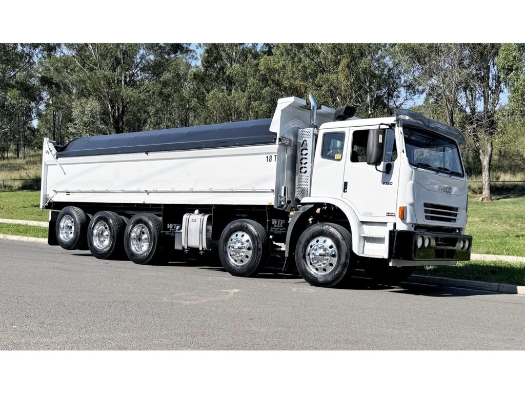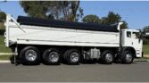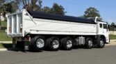 10×4 fitted with ISL cummins engine 8.9 litre, Alison auto, RT40-145 on hendrickson airbag suspension, 10 stud alloy wheels, steel tipping body, new electric poly tarp, ready for NSW registration.