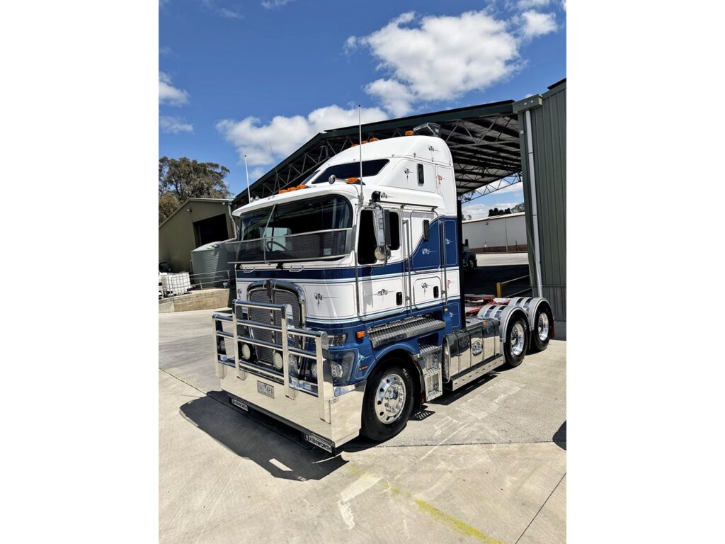 Wheelbase: 4280mm. 750Ltr rectangular fuel tank – Left & Right sides, 200Ltr AdBlue Tank, JOST Fixed turntable, new steer tyres, new turbo, Kentweld air operated bulbar, new dark blue paint and scrolls. Viesa sleeper cooler. Melb to Bendigo daily, has not done any interstate work.