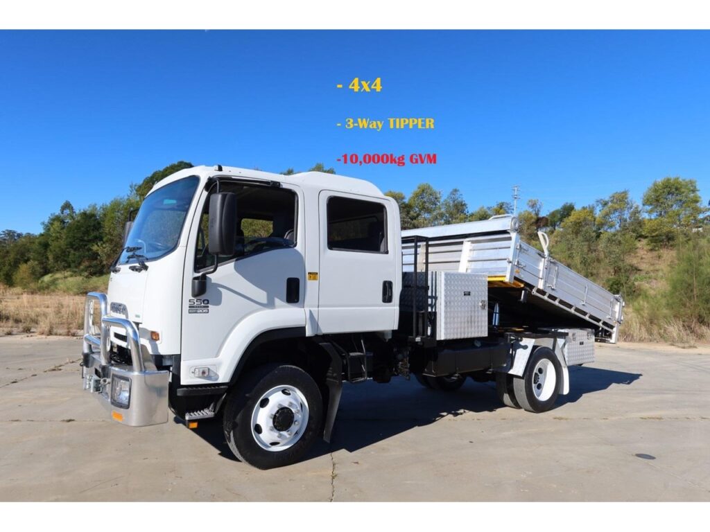 1 x only used 02 / 2015 Isuzu FSS 550 4x4 (4WD) Crew Cab (DUAL CAB) 5.2 litre, turbo / intercooled, SiTEC205hp, 6 speed manual inc an alloy bullbar (inc an integrated 6,800kg capacity winch) and a Uniden UHF radio.
