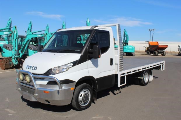 2016 Iveco Daily 45-170 Traytop. Tray Measures 4.25m (L) x 2.15m (W). Fitted with Access Steps, Tie Down Rails, Tow Bar, Alloy Bullbar, Flood Lights, Dual SRS Airbags, ABS Brakes, Cruise Control, Air Conditioning, Heated and Electric Mirrors, Bluetooth Radio, Hands Free Controls, 5 Speed Manual Transmission, 170HP Iveco Turbo Diesel Engine, Travelled 162,941kms!
