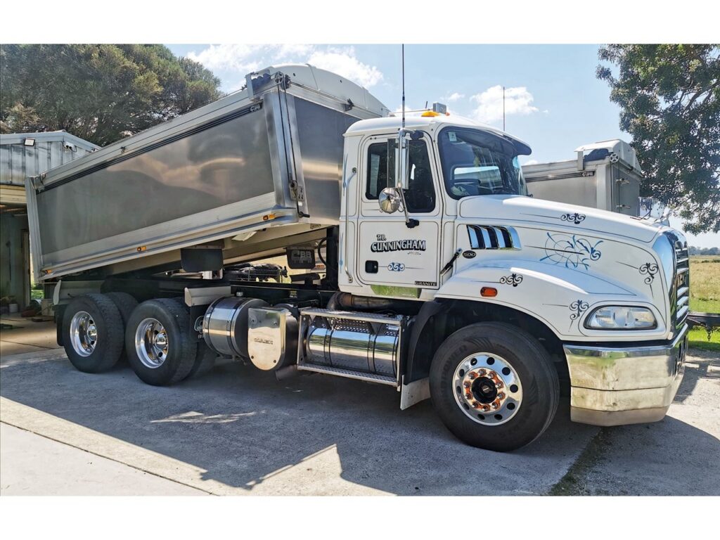 2019 Mack granite tipper. First regd in September 2020. 500hp m drive autoshift 46 meritor diffs cross locks on Hendrixson air suspension, CBB alloy body 4.5×1.2 m with trailer connections, uhf radio, bluetooth cd radio, door alarm, 70 ton rated, owner driver from new 8000