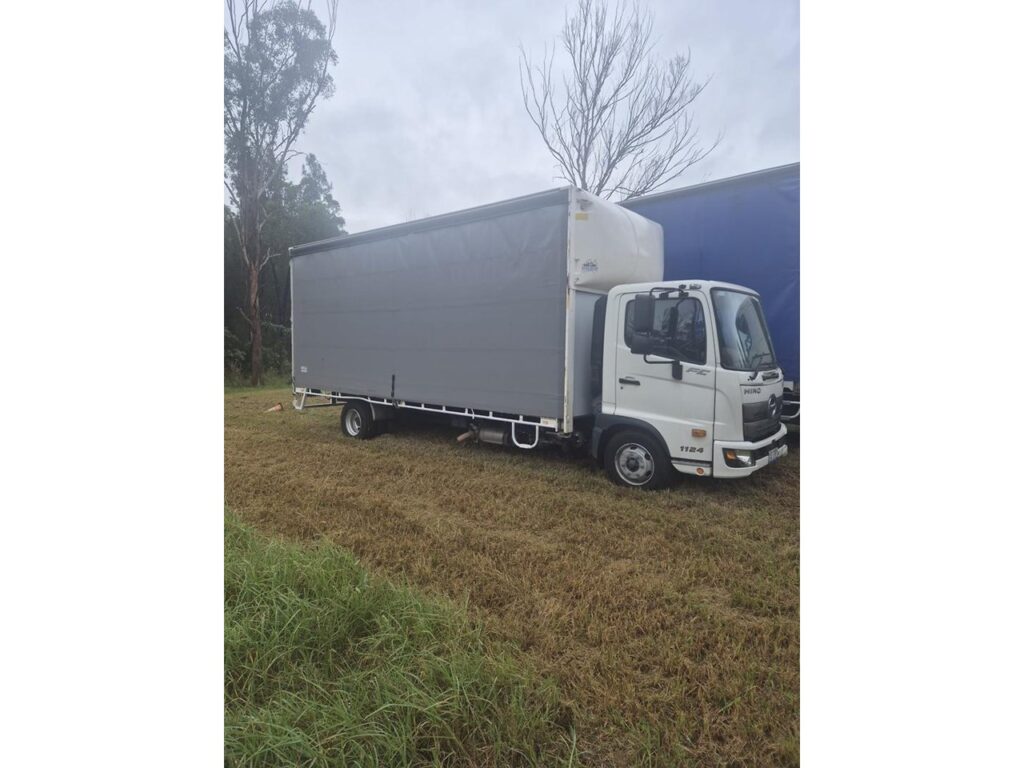 2020 Hino FC 1124 4×2 10 Pallet Curtain Side Truck, 240Hp Hino Engine, AMT Transmission, Hino Rear Axle on Spring Suspension, Air Ride Drivers Seat, Double Din Stereo System, A/C, Power Steering, Steel Disc Wheels,