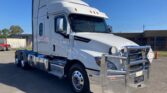2021 Freightliner Cascadia 6×4 Road Train prime mover, Detroit DD16 600hp new engine 0km, Detroit DT12 automated manual transmission, Meritor RT46-160 drive axles on Airliner 46K air bag suspension, 60 integrated XT sleeper cabin, alloy bull bar, Jost 50mm fixed turntable, 1960litre fuel capacity, tidy one owner truck to be sold with South Australian roadworthy