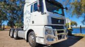 New Sinotruk C7H Premium class 6×4 prime mover truck fitted with MC13.54 Sinotruk engine, 12 speed AMT auto transmission, MCY13 rear axles, air bag suspension, 10 stud alloy wheels, plastic mudguards, Jost 50mm turntable, two alloy fuel tanks 600L and 400L, AdBlue tank 90L, disc brakes, sleeper cabin, rear view window, automatic climate A/C, reverse front and side camera, twin ISRI leather air heated/cooling seats with lumber support and armrests, and lots more..!!!!
