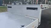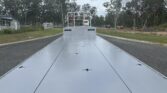 Construction: BS700 grade steel, 6mm Web with 8mm over goose neck, 12mm 350 grade plasma cut coaming, 5mm BS700 grade floor with 24 floor ties downs, gate pockets